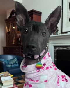 Chaman’s breed was Peruvian Inca Orchid, or Peruvian Hairless. His ancestors guarded temples in the old country where they still roam wild at Machu Pichu!